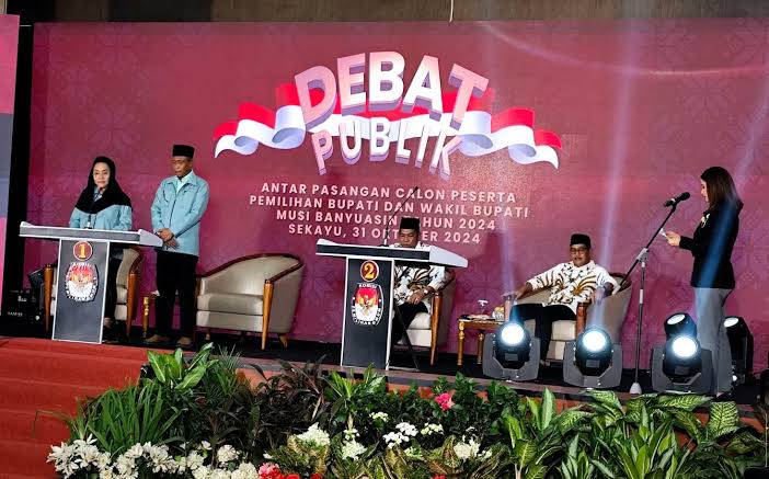 lintaspost.co.id,,MUBA – Debat Perdana Kandidat Calon Bupati Dan Wakil Bupati Musi Banyuasin Pada Pilkada 2024 Berlangsung Lancar dan Aman. Debat Calon Bupati dan Wakil Bupati Muba tersebut berlangsung di Gedung Dharma Wanita Persatuan, Kamis Malam (31/10/2024).