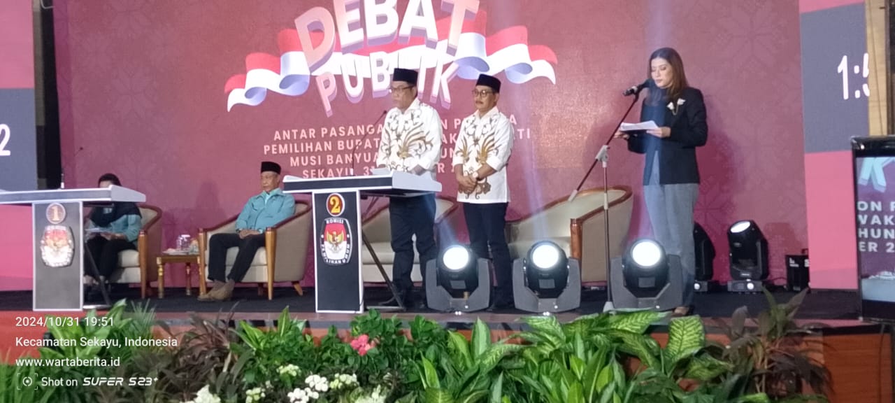 lintaspost.Co.id,,MUBA – Debat perdana Calon Bupati dan Wakil Bupati Musi Banyuasin yang berlangsung Kamis (31/10/2024) di Gedung Dharma Wanita Sekayu berlangsung seru, forum ini menjadi ajang adu program antara kandidat. Pasangan nomor urut 2 Toha-Rohman tampil meyakinkan dengan memaparkan Program Keluarga Maju yang merupakan program prioritas untuk pengentasan kemiskinan ekstrim di Musi Banyuasin.