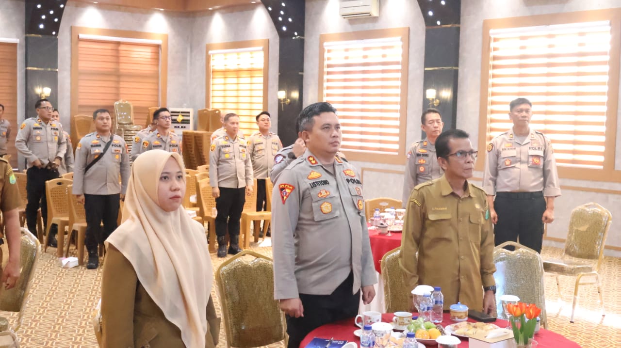 lintaspost.co.id,,Sekayu, Muba – PJ. Bupati Musi Banyuasin yang diwakili Kepala Dinas Tanaman Pangan, Holtikultura dan Peternakan Kabupaten Musi Banyuasin A Thamrin bersama Kapolres Musi Banyuasin AKBP Listiyono Dwi Nugroho beserta jajaran serta perwakilan OPD terkait lainnya menghadiri rapat koordinasi dengan Kementerian Pertanian Republik Indonesia dalam rangka kesiapan penanaman jagung serentak 1 Juta hektar di lahan perkebunan atau lahan lainnya secara virtual di aula Polres Musi Banyuasin, Senin (13/01/2025).
