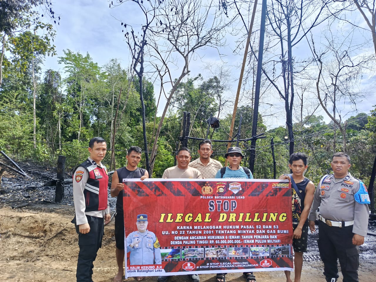 Selain penyampaian pesan lisan, Polsek Batanghari Leko juga memasang spanduk berisi pesan tegas “Stop Ilegal Drilling dan Dilarang Melakukan Ilegal Drilling” di sekitar lokasi untuk memperkuat upaya pencegahan.