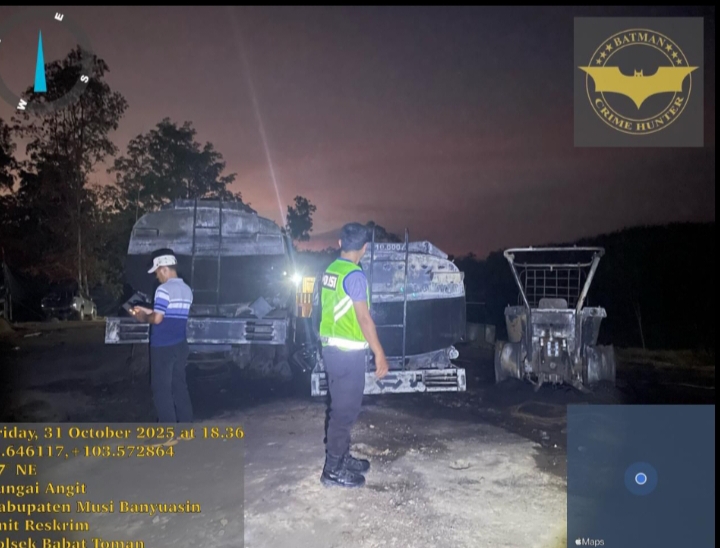 Personil Polsek Babat Toman bersama Unit Identifikasi Sat Reskrim Polres Muba segera mendatangi lokasi kejadian untuk melakukan olah tempat kejadian perkara (TKP) dan cek lapangan guna memastikan penyebab dari kebakaran tersebut.