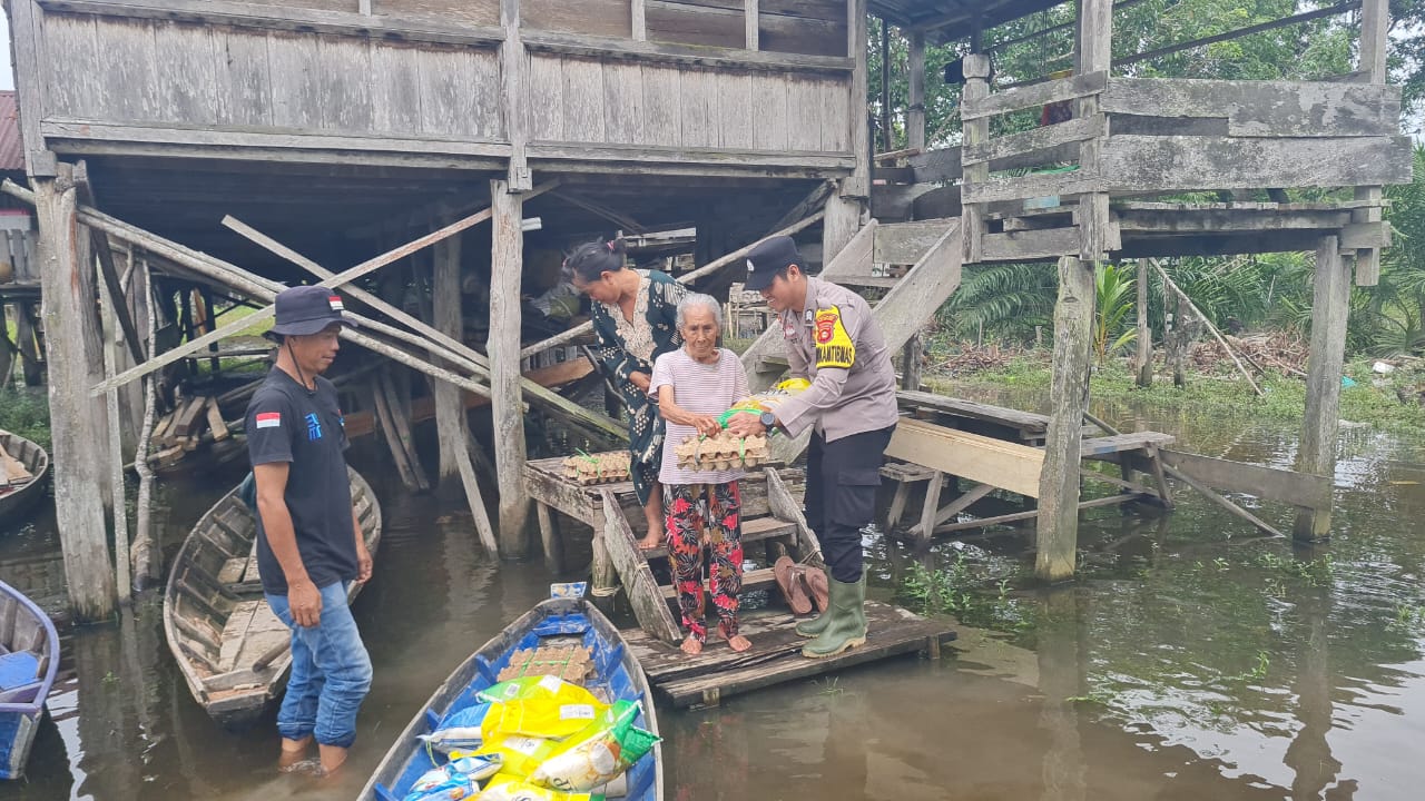 Sebagai bentuk kepedulian dan perhatian Polri terhadap masyarakat, Kapolsek Bayung Lencir turut memberikan bantuan berupa paket sembako kepada warga yang terdampak luapan air sungai.