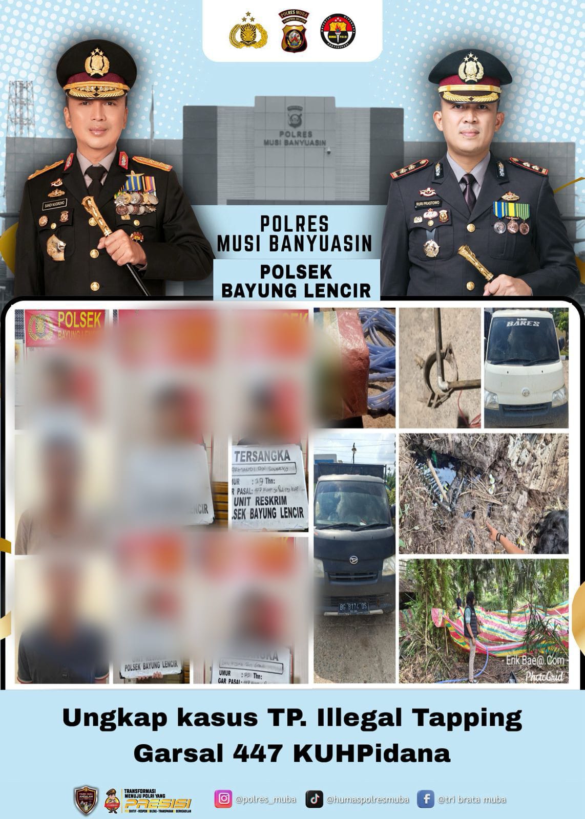 Ketujuh tersangka berhasil diamankan dan kini ditahan di Polsek Bayung Lencir untuk proses hukum lebih lanjut.
