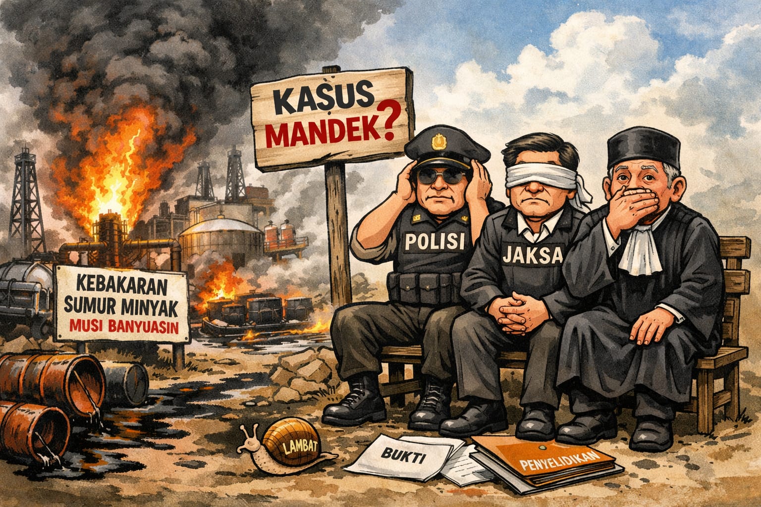“Sejumlah kasus baru-baru ini terjadi seperti kebakaran sumur minyak dan penyulingan Ilegal di Kecamatan Keluang yang belum ada penuntasan.kemarin penyulingan juga terbakar di Kecamatan Sanga Desa, apakah akan berakhir sama seperti kasus di Kecamatan Keluang yang mandek,”ujarnya, Jumat (27/2/2026).