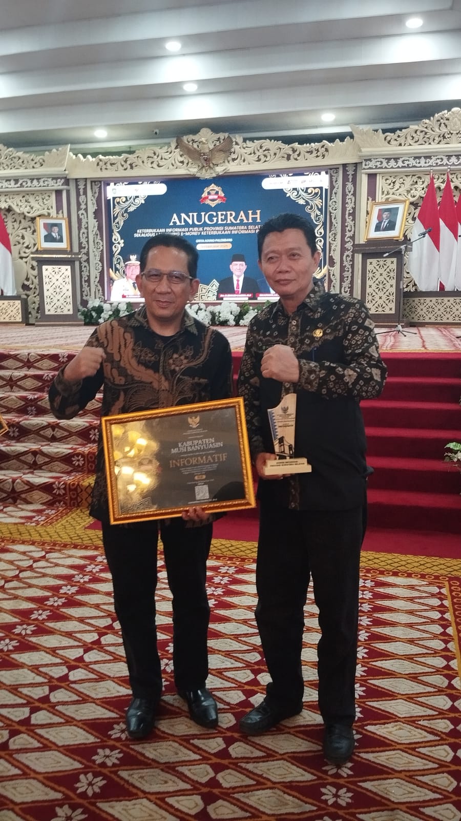 Penghargaan tersebut diterima Bupati Muba HM Toha SH diwakili Kepala Bappeda Muba Dr Mursalin SE MM pada puncak penganugerahan yang dirangkaikan dengan launching E-Monev Keterbukaan Informasi Publik Tahun 2026 oleh Komisi Informasi Provinsi Sumatera Selatan di Griya Agung Palembang, Jumat (13/02/2026).
