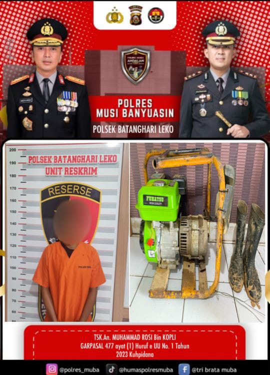 MUBA, lintaspost.co.id,,- Unit Reskrim Polsek Batang Hari Leko resor Muba, menangkap seorang pelaku pencurian dengan pemberatan berinisial MI (26). Pelaku merupakan warga Dusun II Desa Pangkalan Bulian, Kec. Batanghari Leko Kab. Muba.