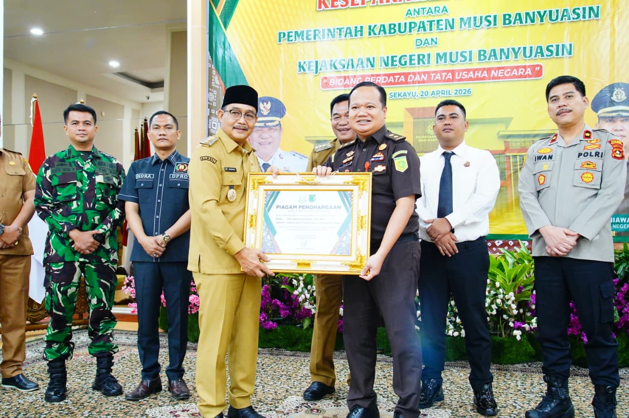 SEKAYU,lintaspost.co.id,,- Perkuat tata kelola pemerintahan yang baik dan aman secara hukum, Pemerintah Kabupaten Musi Banyuasin (Pemkab Muba) bersama Kejaksaan Negeri Muba menandatangani Naskah Kesepakatan Bersama Bidang Perdata dan Tata Usaha Negara. Penandatanganan digelar pada Senin (20/4/2025) di Guest House Griya Bumi Serasan Sekate.