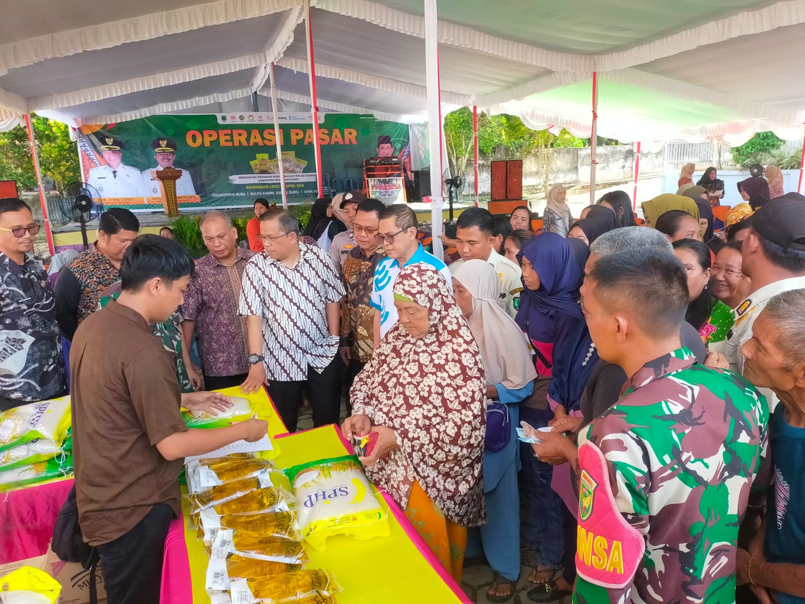 MUBA,lintaspost.co.id,,- Pemkab Musi Banyuasin kembali menggencarkan upaya pengendalian inflasi daerah melalui Operasi Pasar Murah Sembako dan Gas LPG 3 Kg. Kegiatan digelar Kamis (16/4/2026) di Halaman Kantor Camat Batanghari Leko, bekerja sama dengan Bulog Kanwil Sumsel Babel, Bank Sumsel Babel Cabang Sekayu, dan Pertamina Patra Niaga Sumbagsel melalui Agen Pancaroba Pagun Gas.